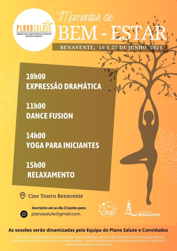 Desta forma, os Momentos de Bem-estar terão lugar no Cineteatro de Benavente, nos dias 26 e 27 de junho.